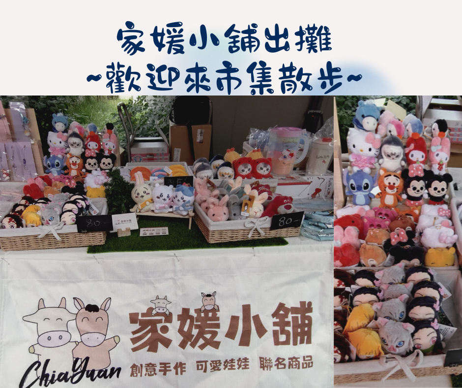 這次家媛小舖帶來許多好禮 可愛娃娃 創意手作吊飾 兒童玩具等 歡迎可以來市集走走