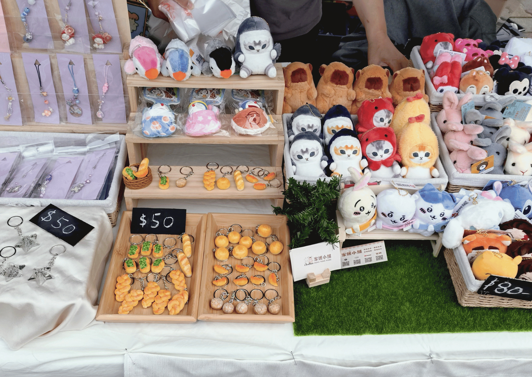 現場有許多人討論的可愛擬真小麵包吊飾與創意精緻手作吊飾
